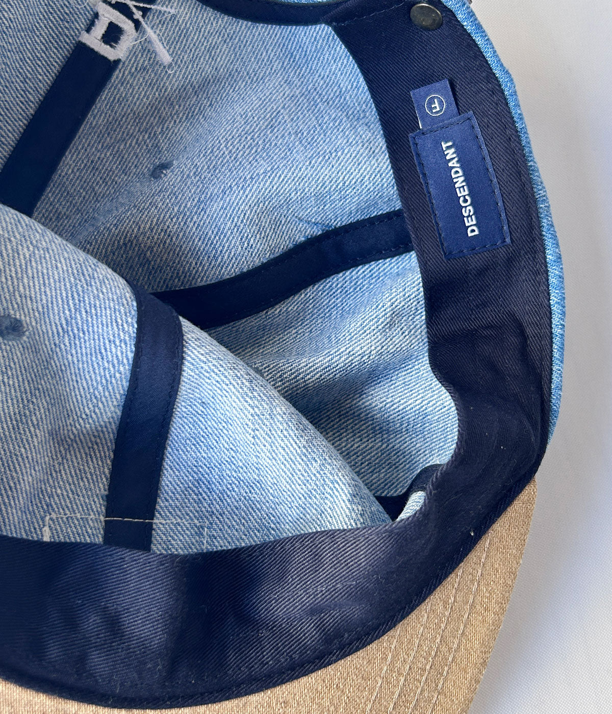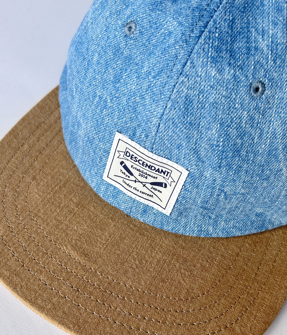 DESCENDANTから、CROSS PADDLE 6PANELが入荷しました。13.5ozのインディゴデニム素材をベースに、バイザーをベージュのカラーデニムに切り替えた2トーンデザインの6パネルキャップ。CROSS PADDLEのパッチを正面に、背面にもCROSS PADDLEの刺繍ロゴ、シンセティックレザーによるサイズ調整ストラップ付。