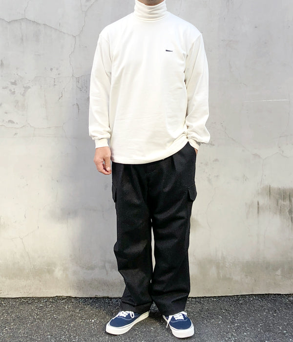 DESCENDANTから、CYLINDER HIGH NECK LSが入荷しました。ポリミックスによる伸縮性に優れたフレンチテリー素材製のタートルネックLS。左胸にクジラの刺繍をワンポイント。タートルネックは折り返しも可能な自由度の高いサイズ感。