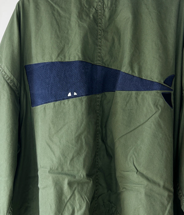 DESCENDANTから、D-65 OXFORD COATが入荷しました。コットン×ナイロンによるオックス素材を使用したD-65仕様のフィールドジャケット。無記入のインシグニアエンブレム、ウェスト周りのドローコード、スタンドカラーに、フラップ付きポケットのディティール。フィッシュテール仕様のバックスタイルに大きなクジラの刺繍入り。