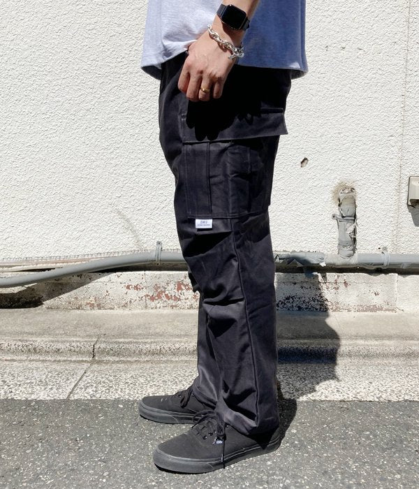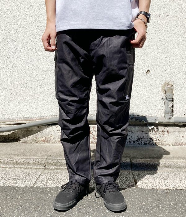 DESCENDANTから、D-65M SATIN TROUSERSが入荷しました。硫化染め加工を施したコットンバックサテンを使用した6ポケットカーゴパンツ。ディティール各所にミリタリーの系譜を引き継ぎつつも、テーパードのかかったシルエットがモダンな印象を与えます。