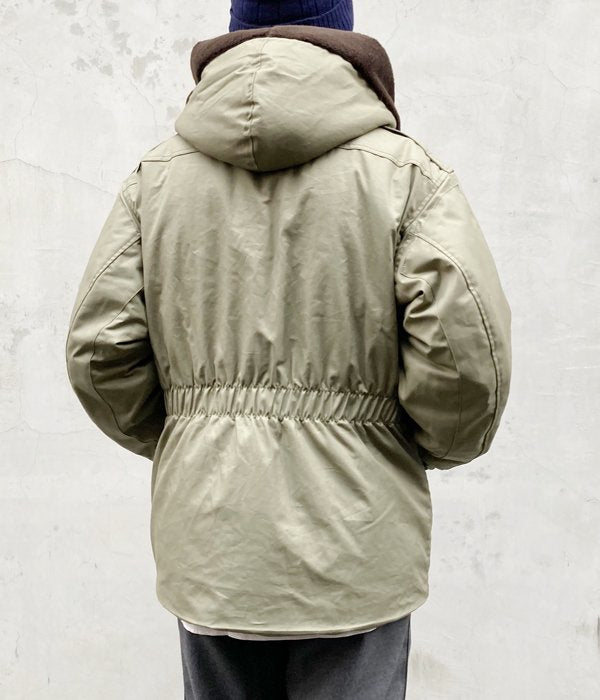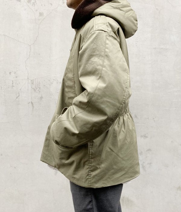 DESCENDANTから、D-B9 TWILL JACKETが入荷しました。中綿入りのコットンボディにキルティングの裏地を備えたヘヴィアウター。襟とフードはボア製で暖かく、袖元には二段編みのニットリブを携え冷気の侵入を防ぎます。背面に施したウエストにギャザーがアクセントに。