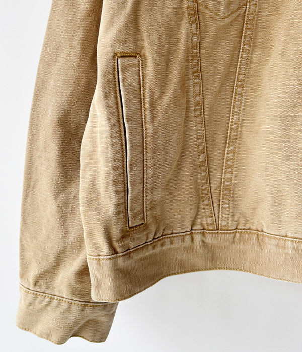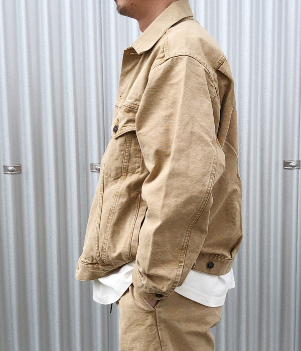 DESCENDANTから、DALLAS DUCK JACKETが入荷しました。コットン製のダック生地に、バイオストーンウォッシュ加工を与えた味わい深い質感が特徴のトラッカージャケット。ゆったりとしたシルエットに仕立て、フラップ付きのバストポケット、ハンドウォーマーポケットを備えたデザイン。