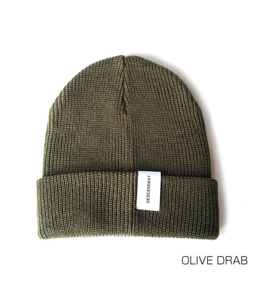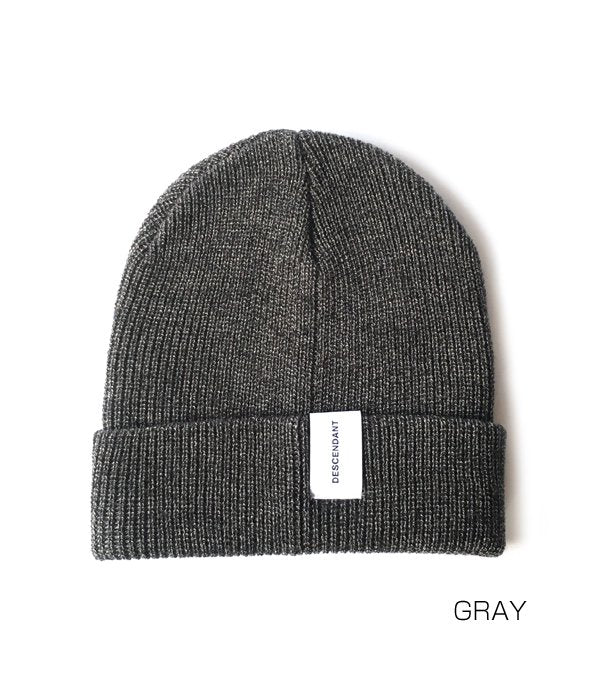 DESCENDANTから、DAWN BEANIEが入荷しました。異なるカラーの毛糸を2色使いしてヘザー調の色味を表現したカフビーニー。DESCENDANTの織りネームをアクセントで側面にON。