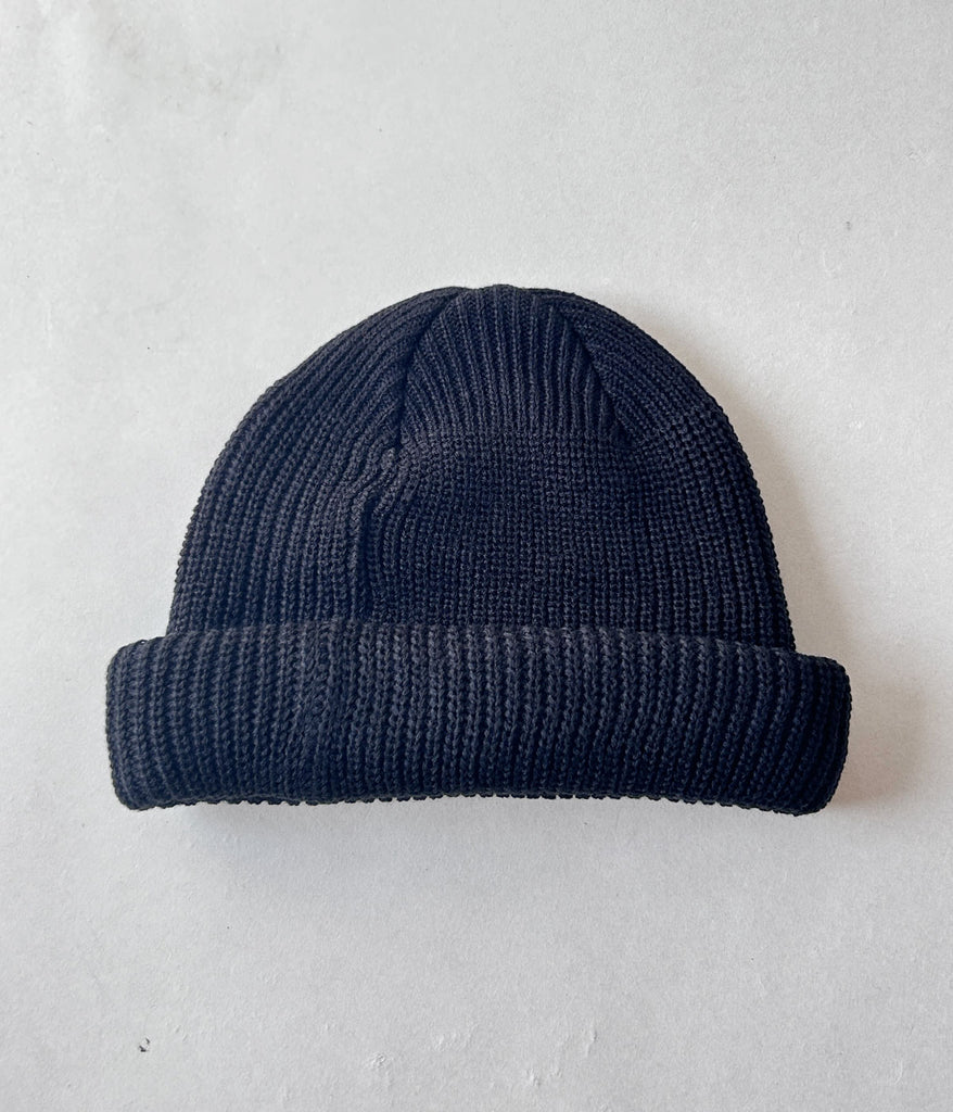 DESCENDANTから、DAWN BEANIEが入荷しました。ローゲージのアクリルニットによるリブ編みデザインのビーニーキャップ。折り返しにCACHALOTの刺繍をワンポイントで施したシンプルなデザイン。
