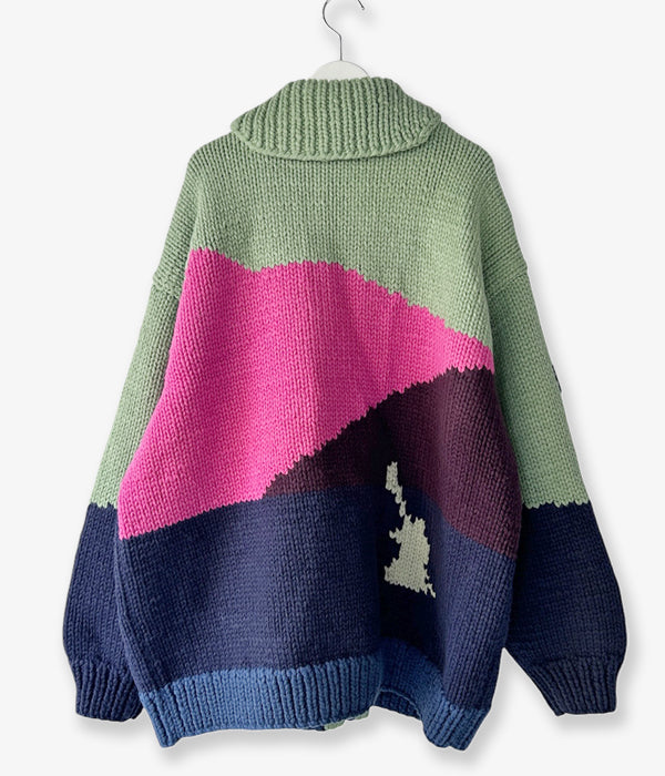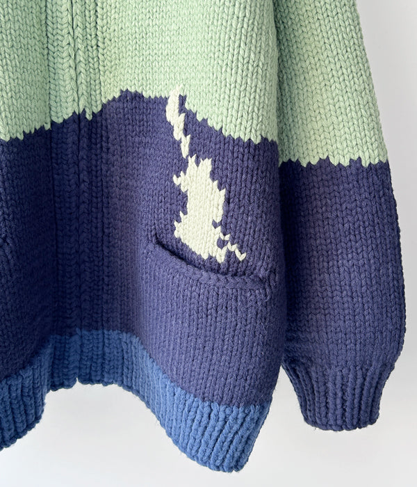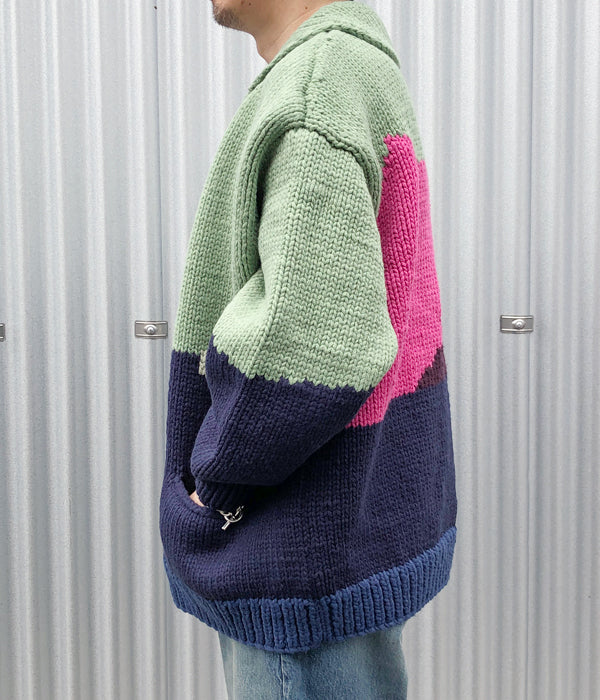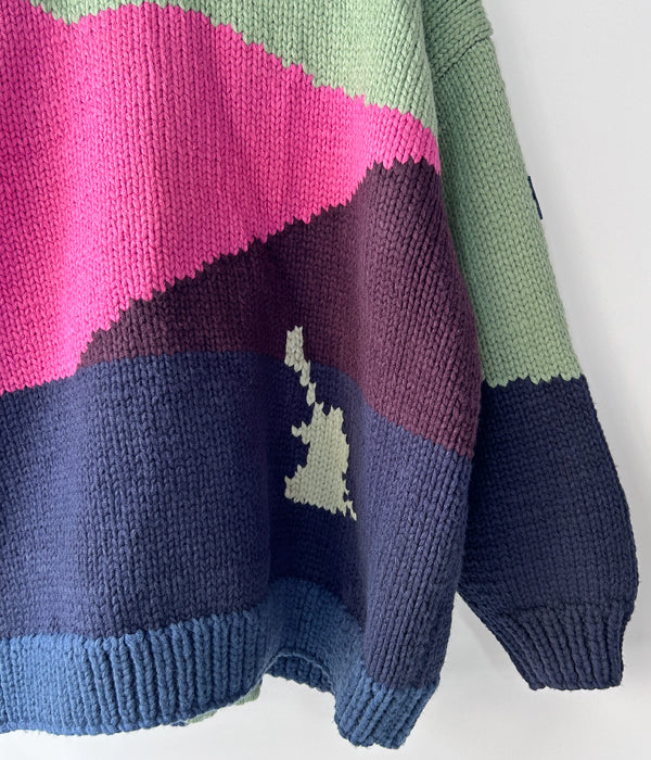 DESCENDANTから、DAWN COWICHAN SWEATERが入荷しました。太い番手で編み上げたざっくりとした仕上げのカウチンセーター。波の上を漕ぐカヌーのモチーフと、背面のビビットなパープルがポイント。アクリル製でチクチクしない快適な着用感が嬉しい仕上がり。