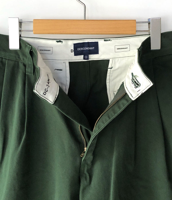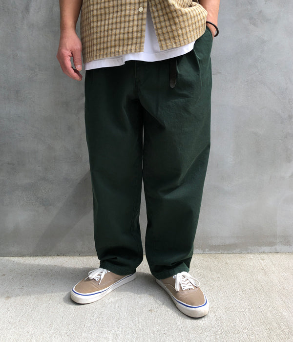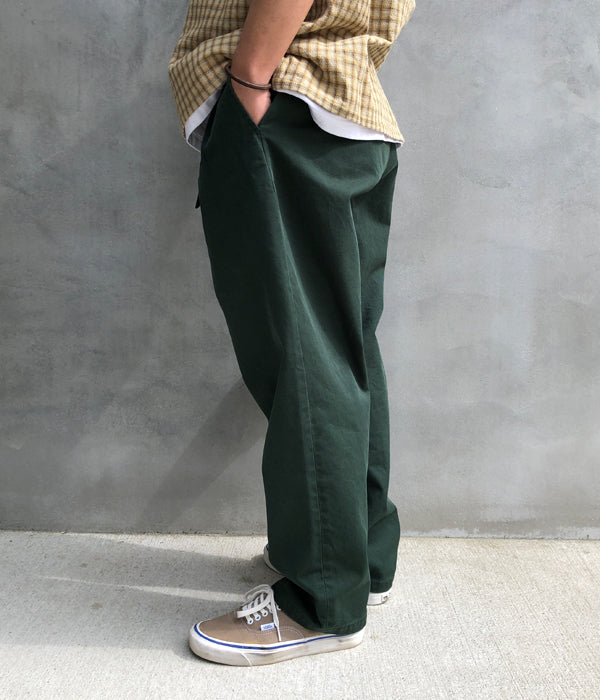 DESCENDANT/DC-3 ORGANIC COTTON TWILL TROUSERS FADE WASH (GREEN)