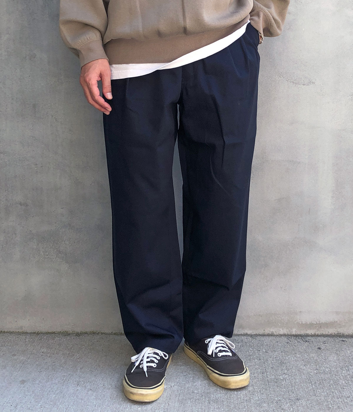 DESCENDANT/DC-3 ORGANIC COTTON TWILL TROUSERS (NAVY)
