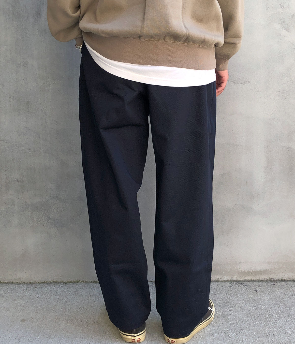DESCENDANTから、DC-3 TWILL TROUSERSが入荷しました。タック入りのゆったりとしたシルエットが特徴のDC-3を、生地目の詰まったコットンカツラギ素材で仕立てました。背面のSPYHOPのパッチがワンポイント。近年のDCDTを象徴するシルエットの2タックトラウザーズ。