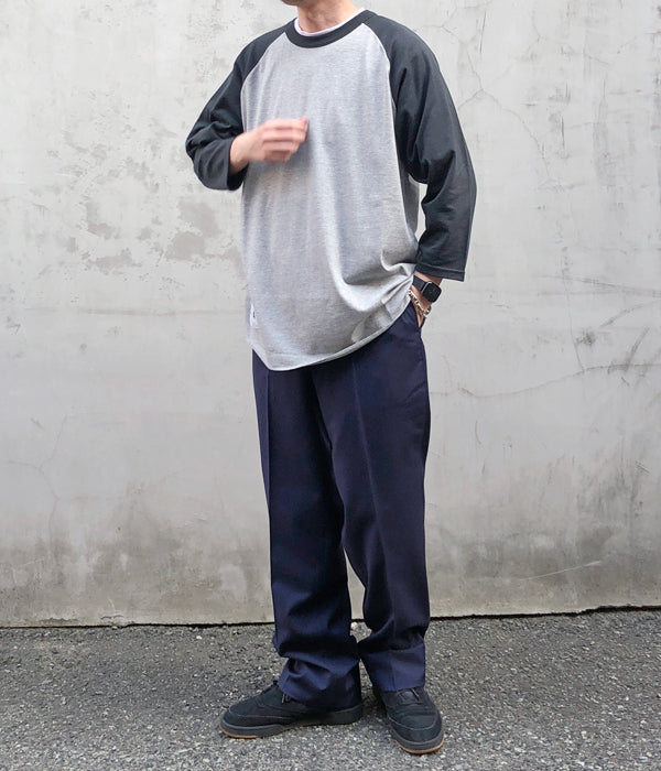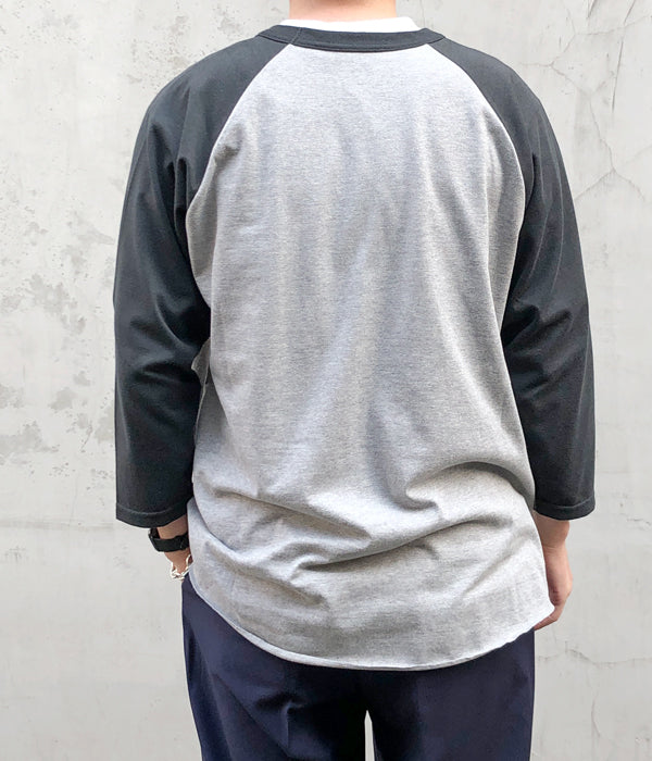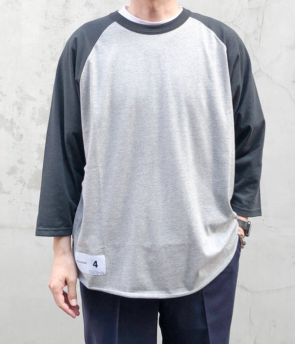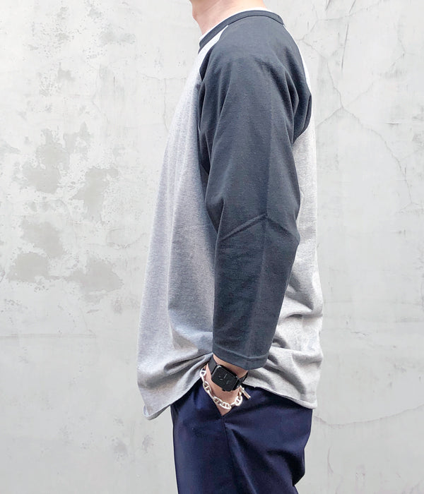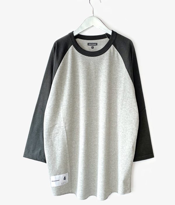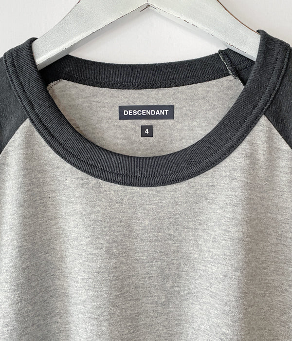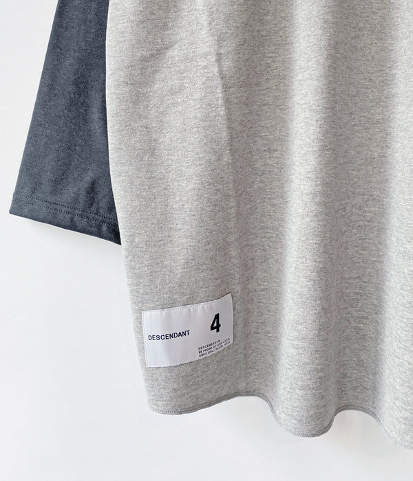 DESCENDANTから、E.P LSが入荷しました。ラグランスリーブのベースボールTシャツ。グレーボディーにスリーブカラーを切り替えたツートーン仕立て。ラウンドしたヘムライン、裾のサイズ表記織りネームがアクセントに。