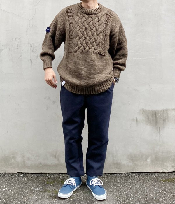 DESCENDANTから、FADED CABLE KNITが入荷しました。ローゲージのざっくり編みが特徴のクルーネックセーター。フロント前後の一部分に飾ったケーブル編みがポイント。ウール混素材の温もりを感じる秋冬ならではのニットアイテム。