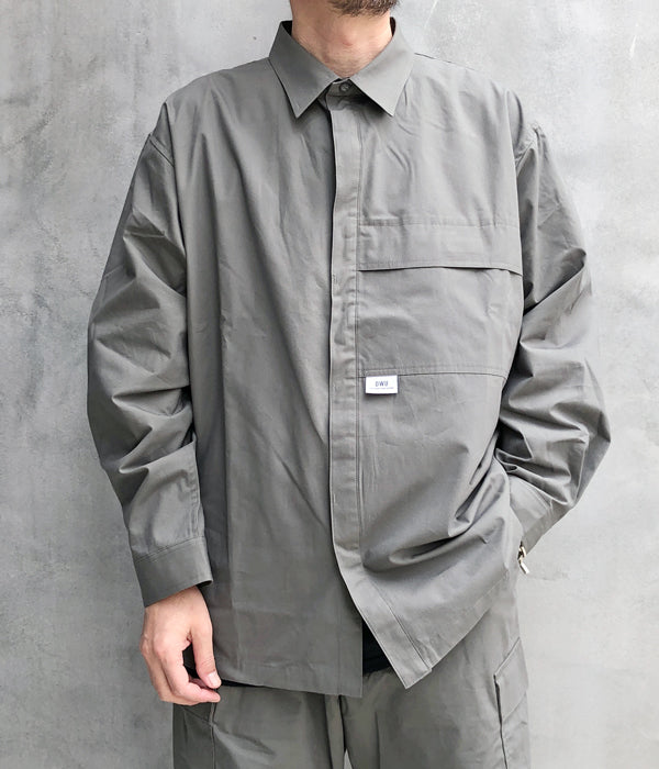 DESCENDANTから、GATHER WEATHER LS SHIRTが入荷しました。コットン製のミリタリーウェザー素材を使用したワークシャツ、From DWUシリーズ。比翼仕立てのフロントに、幅の広いベルクロ付きバストポケット、身幅の広いボックスシルエットによる1着。DWUのロゴパッチをワンポイント。