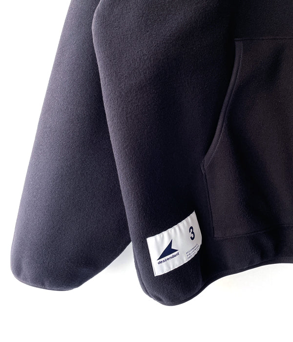 DESCENDANTから、GUARDIANS FLEECE HOODYが入荷しました。首周りに溜まるようフードにアレンジしたバラクラバ(実用可能)がポイントのフリースシャツ。新機軸のデザインに、UNDER THE CURRENTの刺繍ロゴと、BOX LOGOのラバーパッチで飾り付け。マフポケットを備えたデザイン。