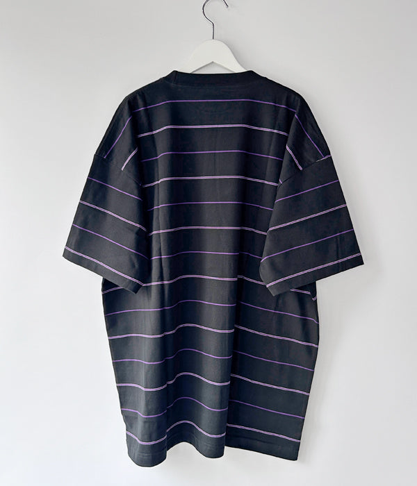DESCENDANTから、HORIZONTAL MULTI STRIPE SSが入荷しました。ブラックを基調とした先染めコットン素材を使用したマルチボーダーSS。ボーダーカラーのパープルをピックアップしたクジラの刺繍がワンポイントデザイン。ゆったりとしたシルエットに袖口にはリブを備えたデザイン。