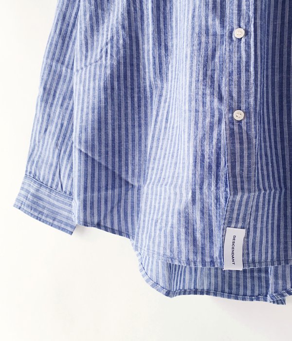 DESCENDANTから、HYANNIS B.D LS SHIRT FULL SIZEが入荷しました。リネンとラミーを含む清涼感のある混紡素材による涼しげなB.Dストライプシャツ。バストポケットにCACHALOTロゴを刺繍し、身幅を広く取ったフルサイズモデル。