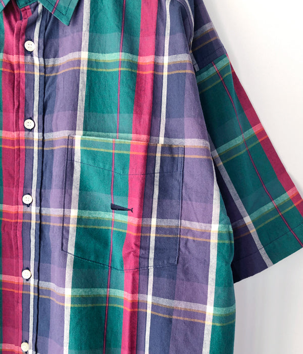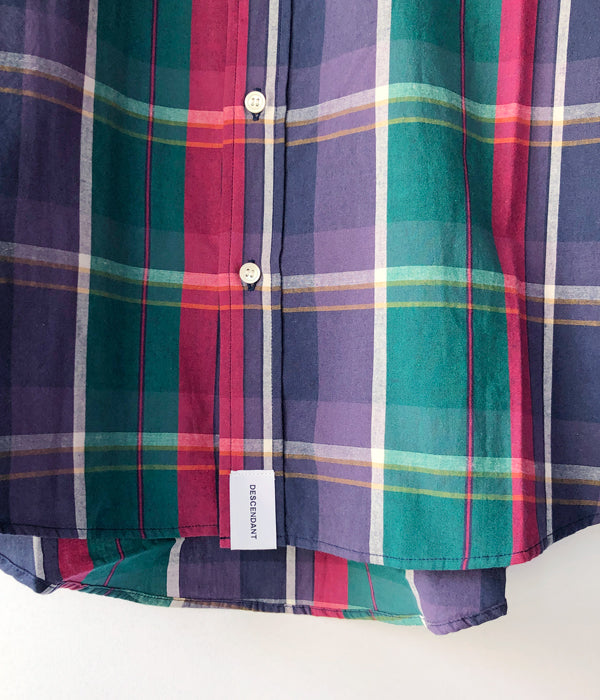 DESCENDANTから、HYANNIS SS SHIRTが入荷しました。コットン製のマドラスチェック柄による半袖シャツ。レギュラーカラーに身幅の広いシルエットに仕立て、クジラの刺繍入りのバストポケットがワンポイント。