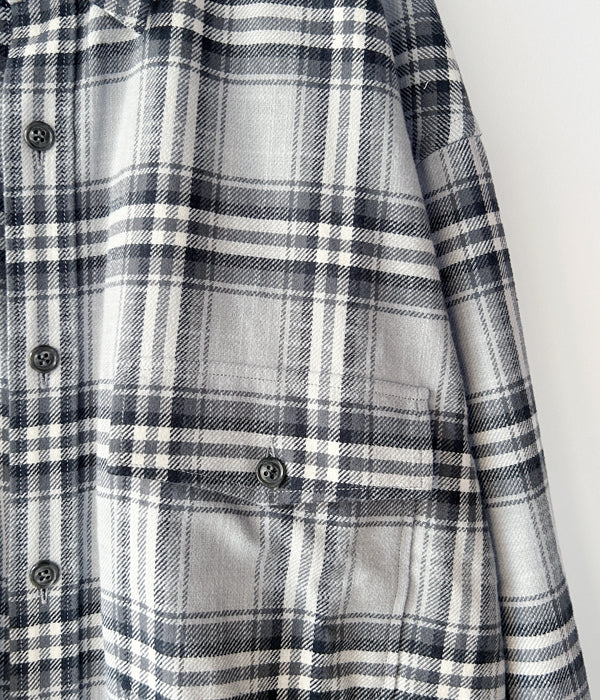 DESCENDANTから、JAMES LS SHIRTが入荷しました。起毛加工を施したプレイドチェック柄のレギュラーカラーシャツ。ホームベース型のフラップポケットがクラシックな顔立ち。ゆったりとしたサイジングで仕立てたざっくり羽織れるネルシャツです。琴線に触れるナイスチェック、渾身のワンカラー展開。
