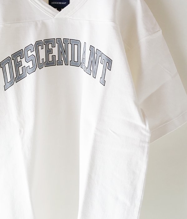 DESCENDANTから、JED FB JERJEY SSが入荷しました。アーチ状にデザインされたDESCENDANT LOGOがインパクトを与えるSS T-SHIRT。フットボールジャージ仕様にヨーク切り替えが施され、控えめなV-NECKもポイントです。