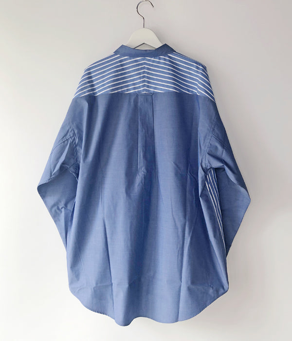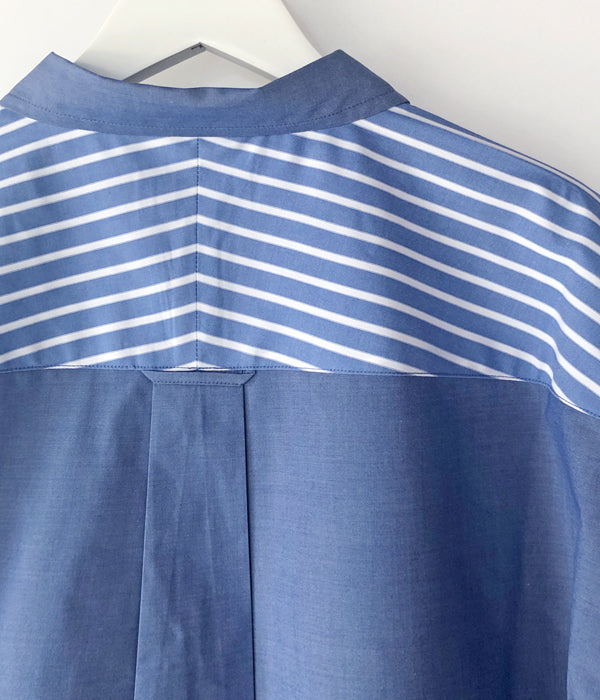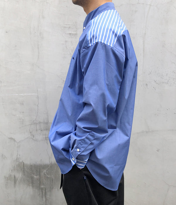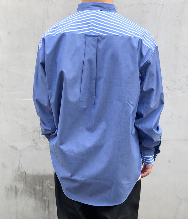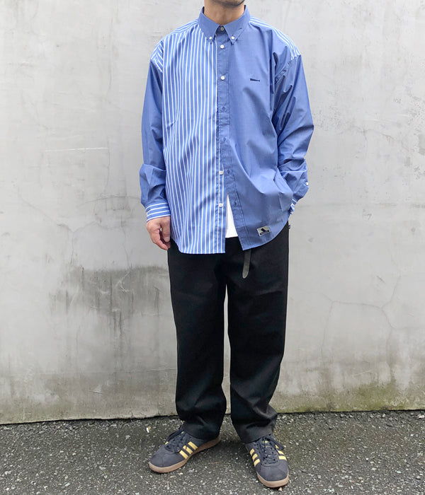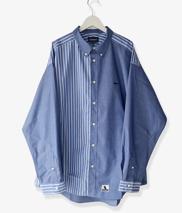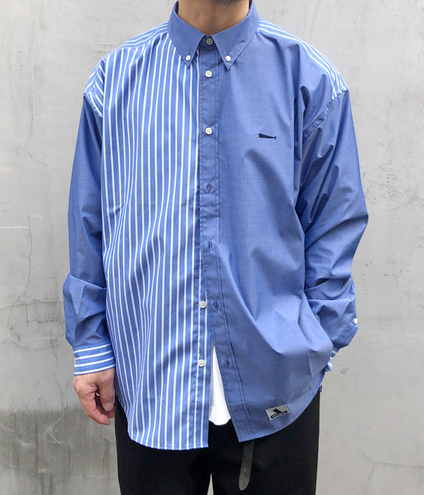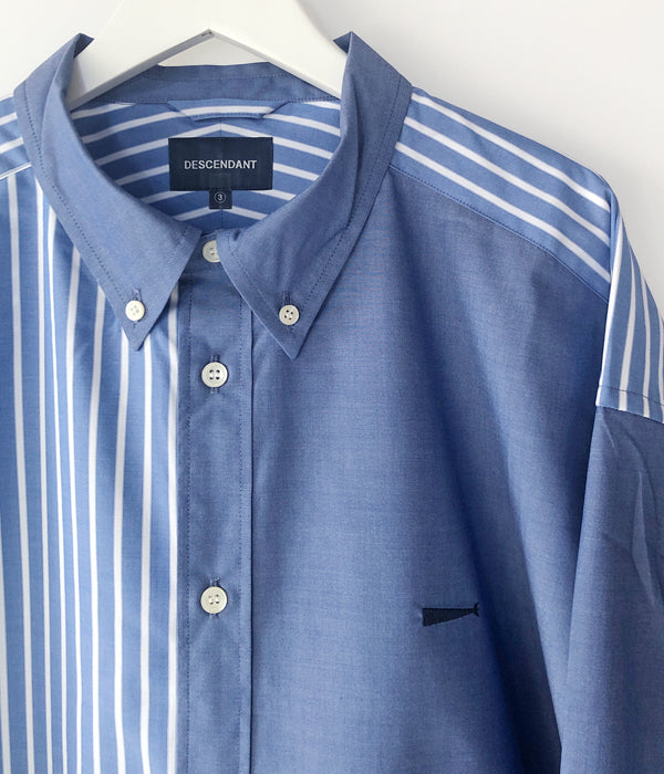 DESCENDANTから、KENNEDY’S ACID LS SHIRTが入荷しました。青を基調とした無地と、マルチストライプ柄をクレイジーパターンで切り替えたインパクトのあるLSシャツ。ボタンダウンのデザイン、バストにクジラの刺繍をワンポイントであしらったゆったりとしたサイジングの1着。