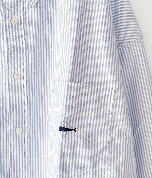 DESCENDANTから、KENNEDY'S OXFORD STRIPE B.D. LS SHIRTが入荷しました。オックス生地に爽やかなストライプ柄の、ゆったりとしたシルエットのボタンダウンシャツ。バストポケットにクジラの刺繍をワンポイントでデザイン。