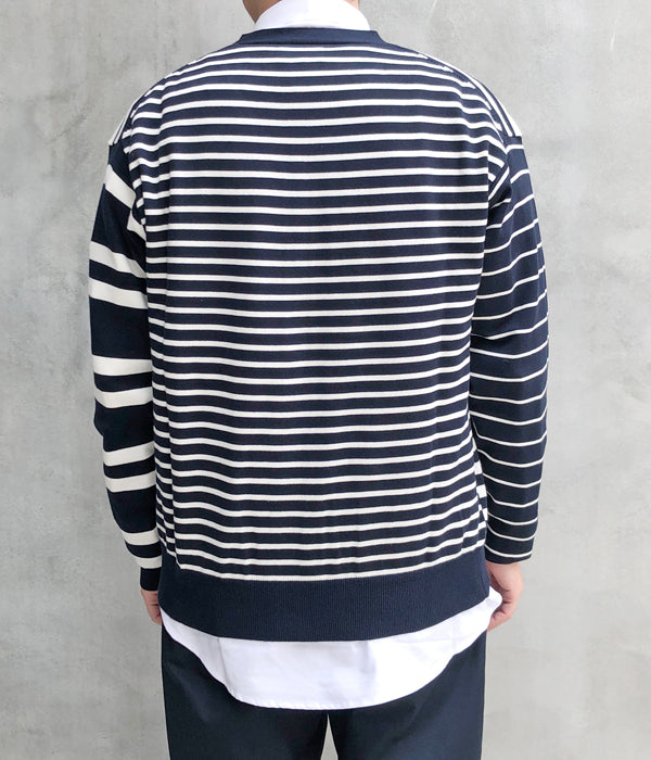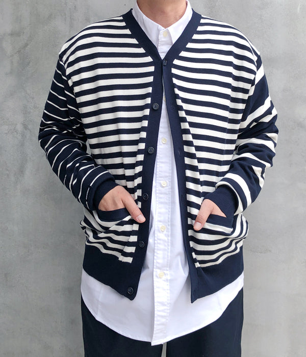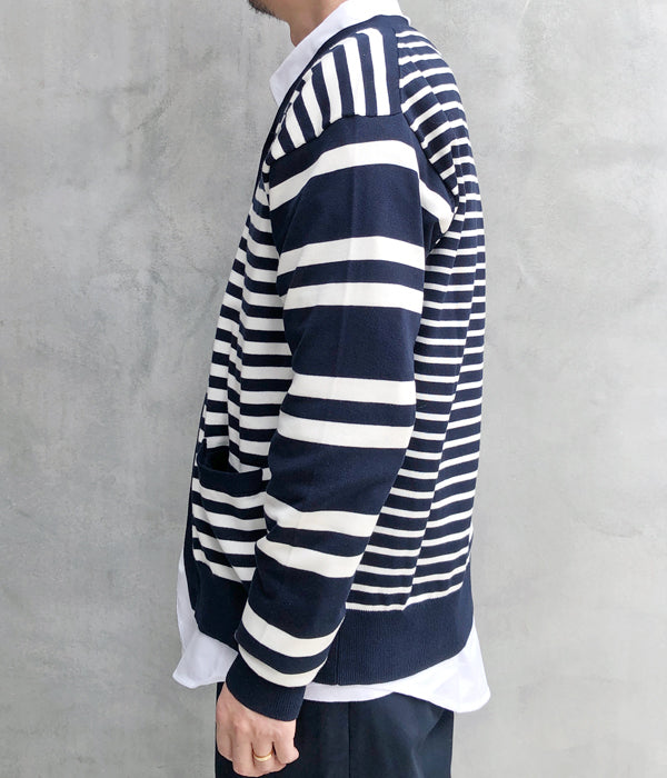 DESCENDANTから、MAR DE MER KNIT CARDIGANが入荷しました。ネイビーを基調としたピッチの異なるボーダー柄を組み合わせた、クレイジーパターンによるカーディガン。コットンニット製でお手入れも容易で使い勝手の良い1着。スリーブポケットを左右に配置。