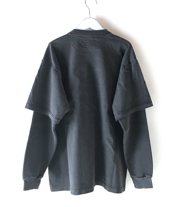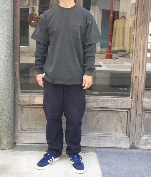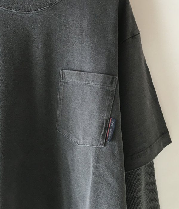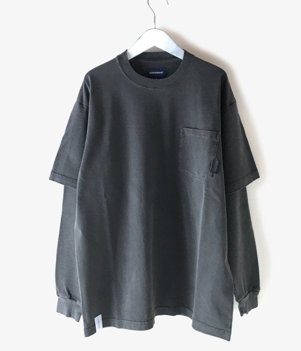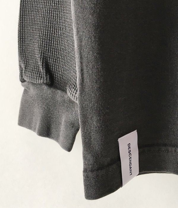 DESCENDANTから、MILITIA LAYERD TEEが入荷しました。ピグメントダイ加工を施したコットン天竺ボディに、ワッフル編のロングスリーブをドッキングした定番のレイヤードカットソー。季節の変わり目に重宝する一着です。ポケット脇にはHORIZON LOGOをON。