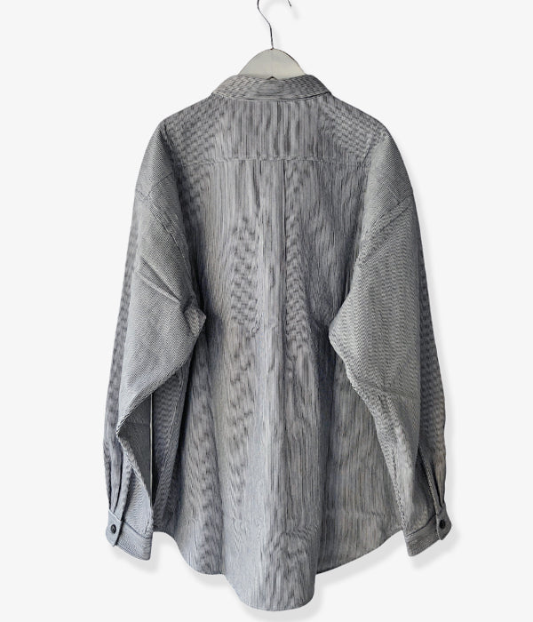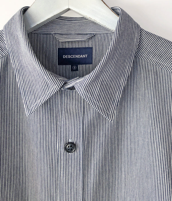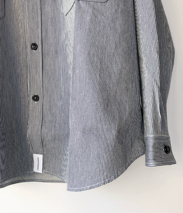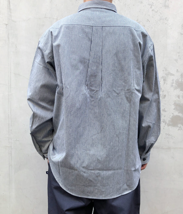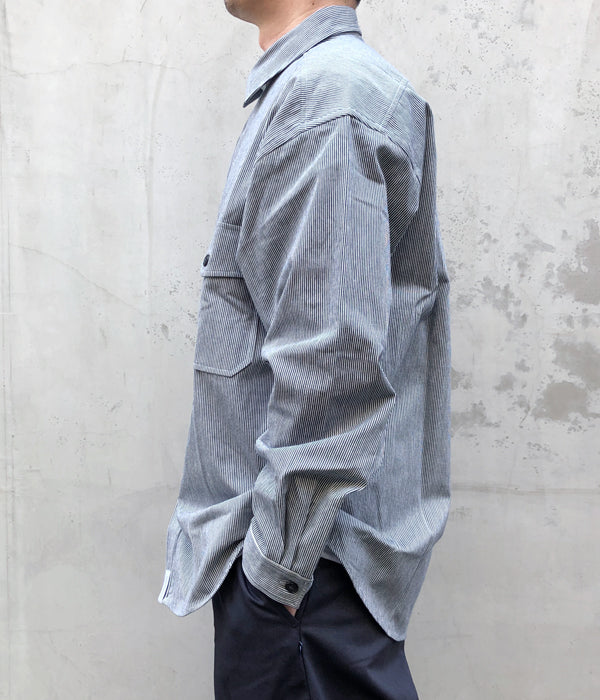 DESCENDANTから、MINE LS SHIRTが入荷しました。ヒッコリーストライプ柄の薄手のデニム生地を使用したワークテイストのシャツ。ホームベース型のフラップポケットがクラシックな顔立ち。ゆったりとしたサイジングで仕立てたざっくり羽織れるラフな雰囲気の1着。