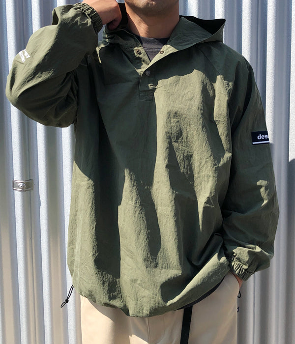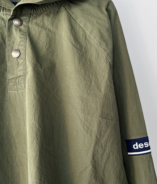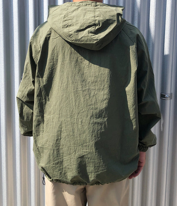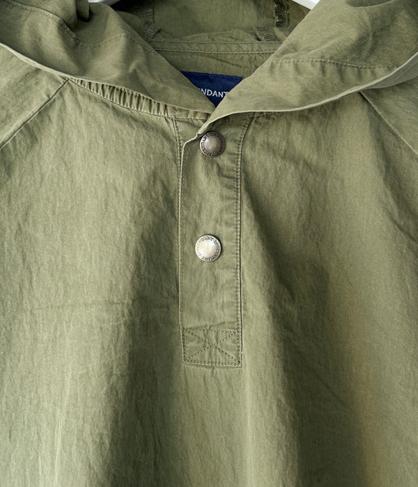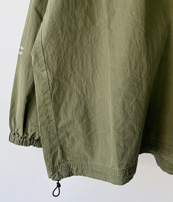 DESCENDANTから、MOLE HOODED LS SHIRTが入荷しました。撥水性のあるコットン×ナイロン素材を使用したフード付きアノラックシャツ。2か所のスナップボタンによるプルオーバー仕立て、裾周りに絞りを調整できるアジャスターコードを内蔵。両腕のアイコニックな刺繍がポイントです。