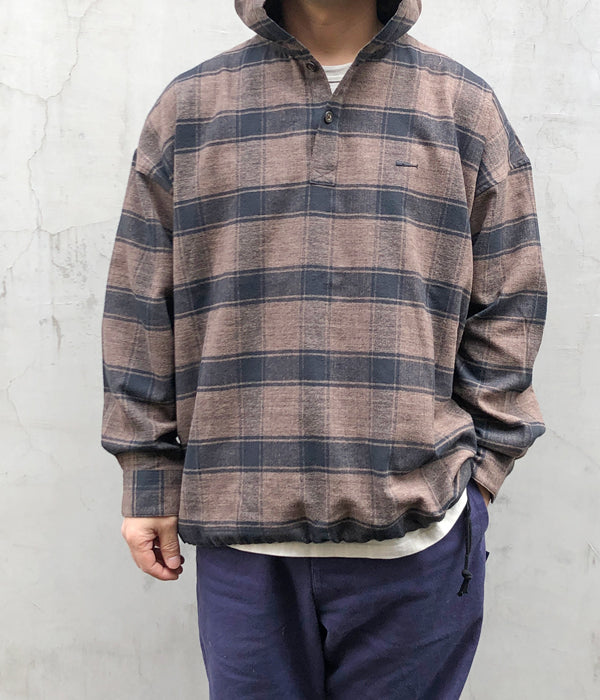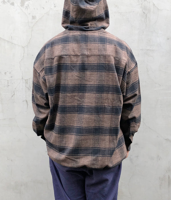 DESCENDANT/MOLE HOODED PLAID SHIRT (BROWN)