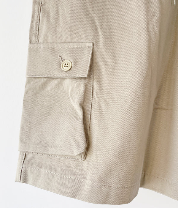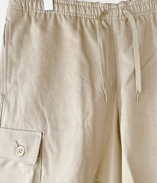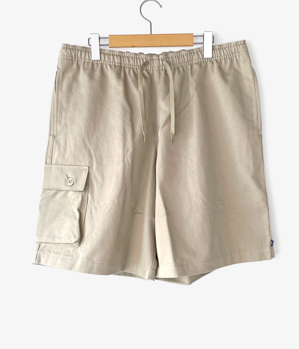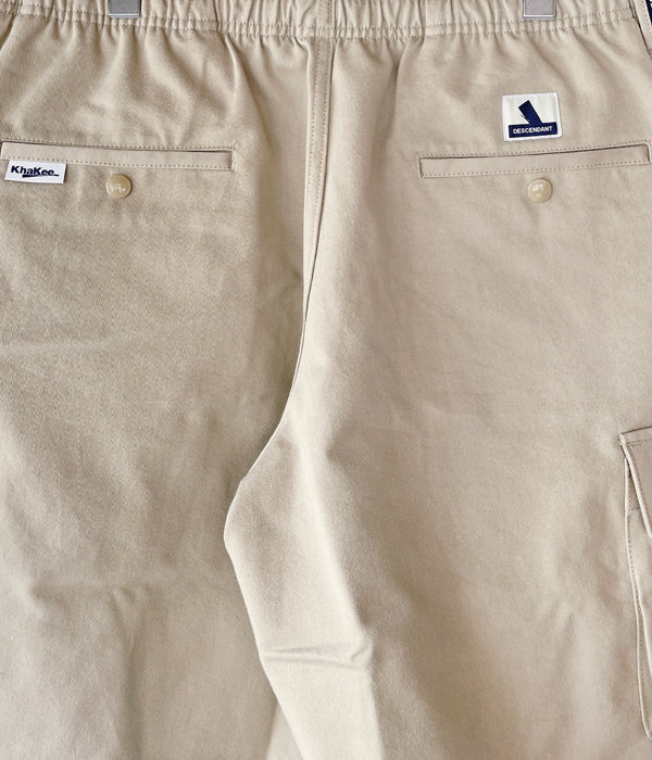 DESCENDANTから、MULE COTTON CHINO BEACH SHORTS OGが入荷しました。今シーズンよりリリースされた新機軸であるサンドベージュにフォーカスしたKhaKeeシリーズより、オーガニックコットン製のチノクロスを使用したウェストゴム入りのビーチショーツ。片側のみに配置したカーゴポケットをアクセントに、4か所のパッチタグで飾り付け。