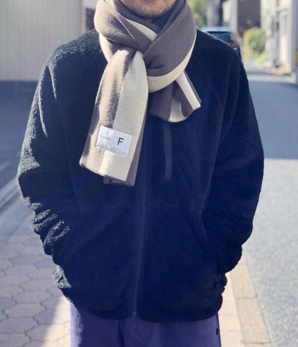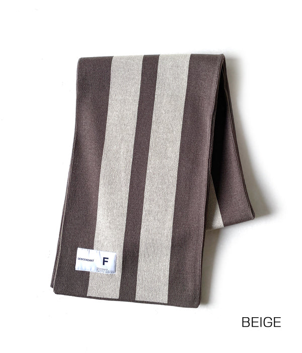 DESCENDANTから、NECK WAMER MUFFLERが入荷しました。ストライプ柄のシンプルなデザインのボリュームのあるマフラー。アクリル製なのでチクチク感が軽減されます。サイズ表記の織りネームをワンポイントデザイン。