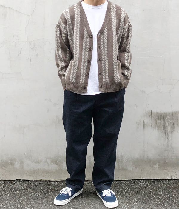 DESCENDANT/NURSE KNIT STRIPE CARDIGAN (BEIGE)