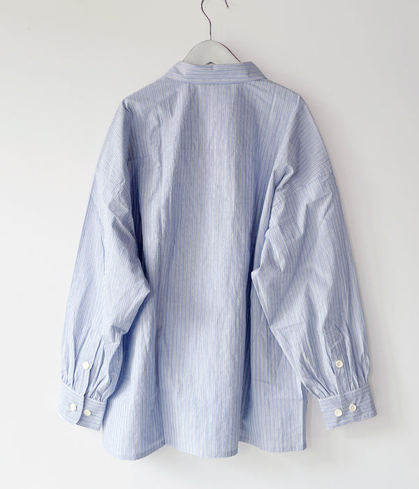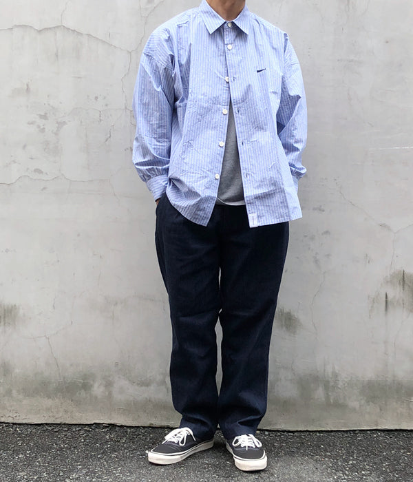DESCENDANTから、OCEAN STRIPE LS SHIRT FULL SIZEが入荷しました。インド原産のオーガニックコットンを使用したブルーベースの清涼感のあるストライプシャツ。肩を落としたシルエットに、身幅広めのボックス型による仕立て。