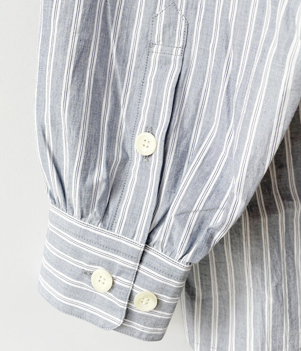DESCENDANTから、OCEAN STRIPE LS SHIRT FULL SIZEが入荷しました。インド原産のオーガニックコットンを使用したブルーベースの清涼感のあるストライプシャツ。肩を落としたシルエットに、身幅広めのボックス型による仕立て。