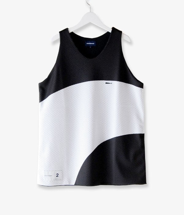 2枚仕立てのメッシュ素材B-BALL JERSEY。タンクのボディを一周するオルカデザインの一着。