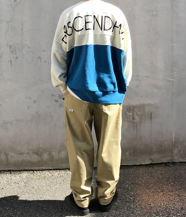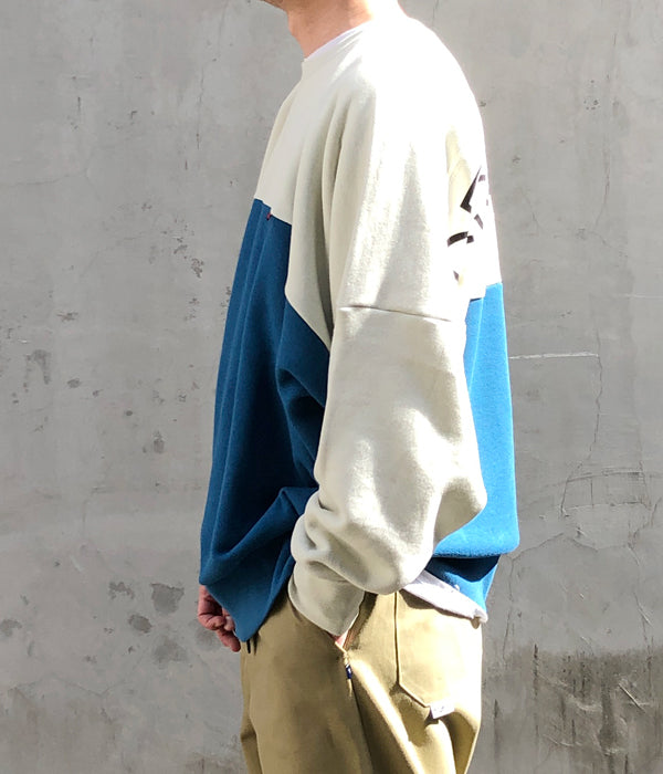 DESCENDANTから、PADDLE CREW NECKが入荷しました。リサイクル生地を身頃の上下に切り替え、PADDLEロゴのワッペンをアーチ状にデザインしたP/O TOP。ドロップショルダーのゆったりとしたデザイン。バックスタイルにアクセントを与えたシグネチャーモデル。