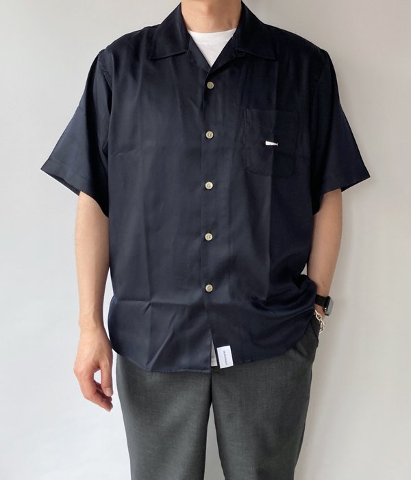 DESCENDANT/PIER SATIN SS SHIRT (NAVY)