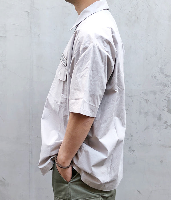 DESCENDANTから、PROP SS SHIRT STANDARD OGが入荷しました。オーガニックコットンを使用した生地にウォッシュ加工を施し仕立てた半袖ワークシャツ。左右に大きなフラップ付きポケットを配し、雨にも負けずのメッセージ入りの刺繍パッチで装飾を施しました。