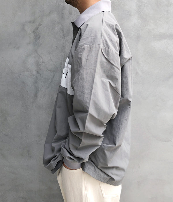 DESCENDANTから、PUBA LS SHIRTが入荷しました。柔らかい質感のナイロン素材を使用したラガーシャツ仕立てのプルオーバーシャツ。バストの切り替え部分にSHIP LOGOを大きくあしらい、サイドスリットにブランドネーム入りの伏せテープを忍ばせました。リブ編み素材の襟と袖リブがポイント。