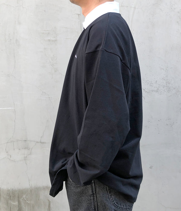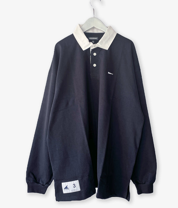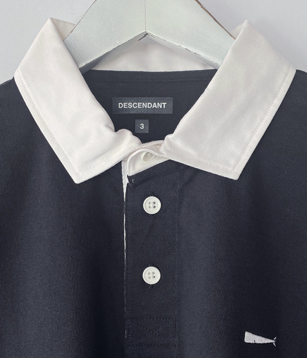 DESCENDANTから、PUBA POLO LSが入荷しました。ドライな質感の反毛生地を使用したコットン製ラガーシャツ。クレリック白襟に切り替えたクラシック仕様。左胸のクジラの刺繍と、右裾のアスレチックネームでワンポイント。