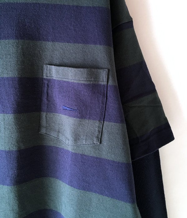 DESCENDANTから、RICO LAYERD TEEが入荷しました。コットン生地のラグビーボーダー柄に、無地のサーマルスリーブを合わせたレイヤードLS。2-TONEで仕上げたまとまりあるボーダーT-SHIRT。刺繍入りのバストポケットがワンポイント。