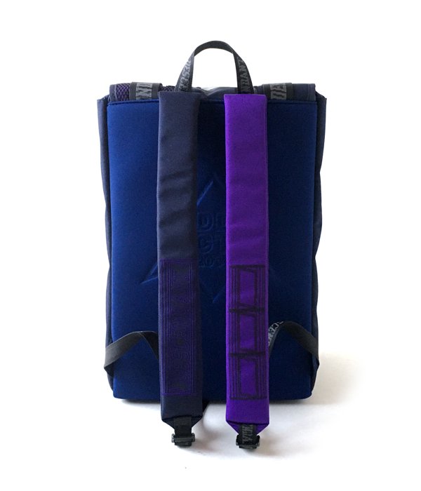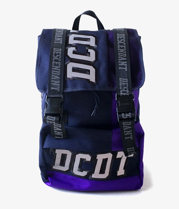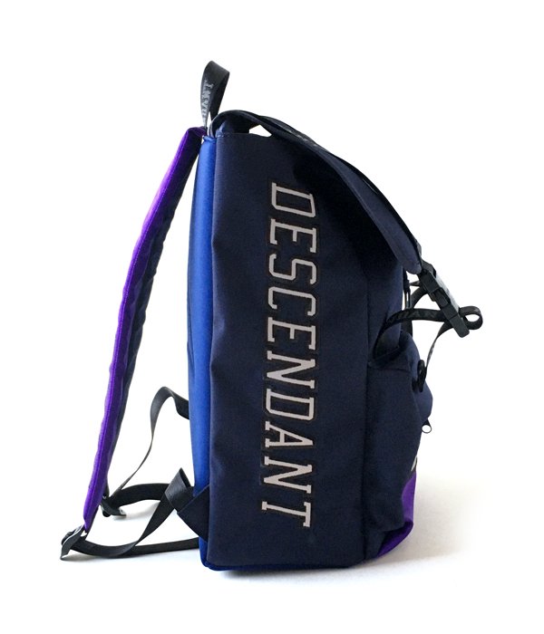 DESCENDANTから、ROUTE NYLON BACK PACKが入荷しました。コーデュラナイロンを使用した、2-TONEカラーBOX型ボディによるフラップ式バックパック。随所にブランドロゴをあしらい、パープルとネイビーのカラーリングがスポーティーなモデル。