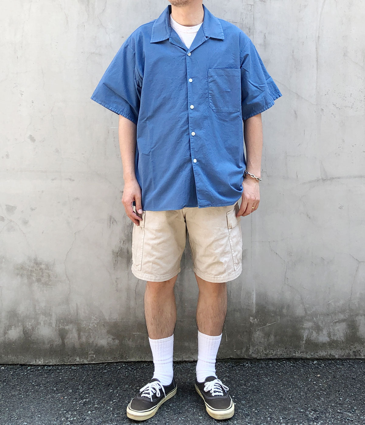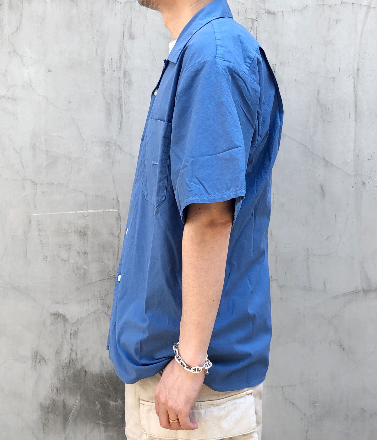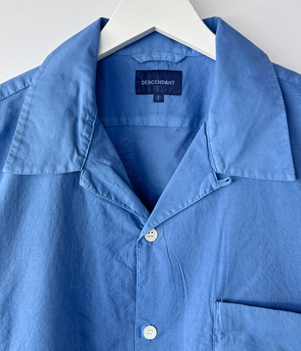 DESCENDANT/S WIND OPEN COLLAR SS SHIRT PIGMENT DYE (BLUE)