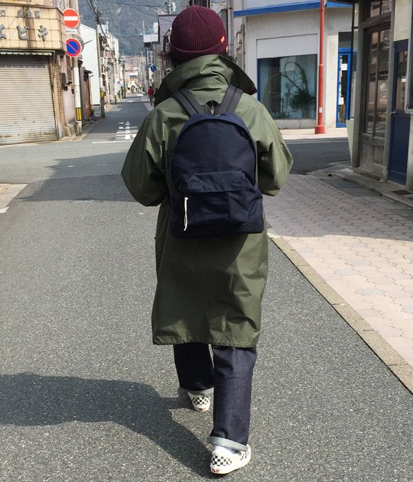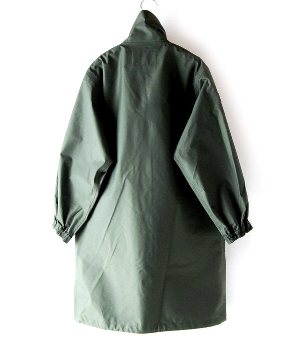 ひざ丈のゆったりとしたフォルムに仕上げた、ナイロン製のウォータープルーフシェルJKT。ダブルジップとベルクロを併用したフライフロント仕様。裏地との2-TONEカラーがポイント。