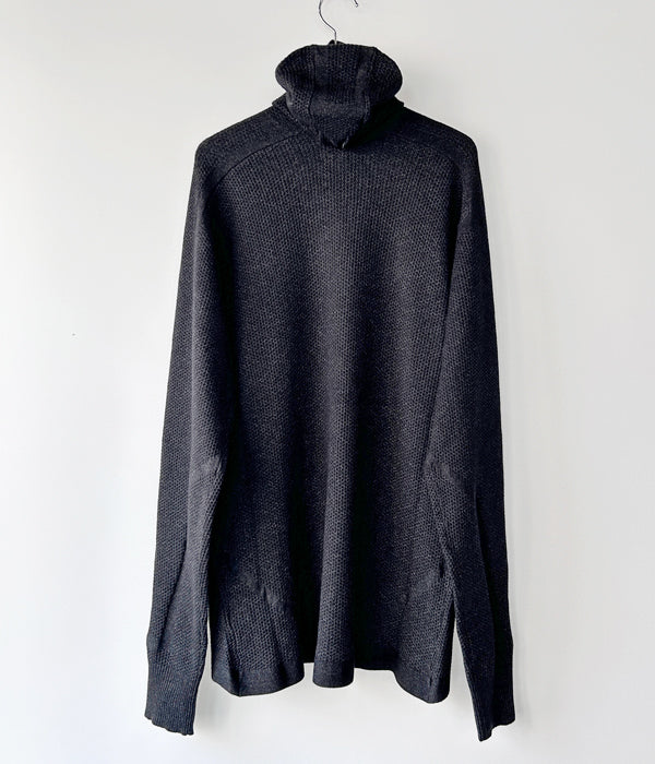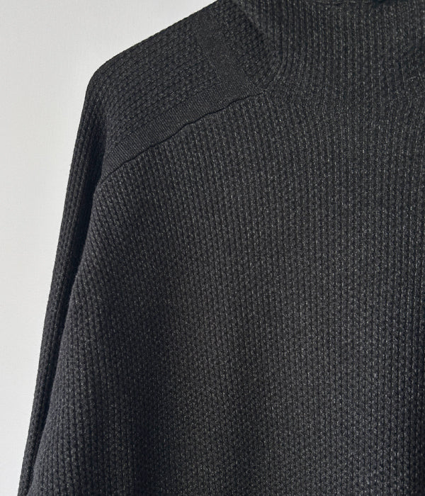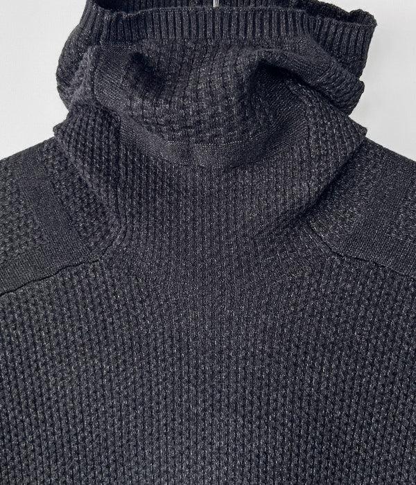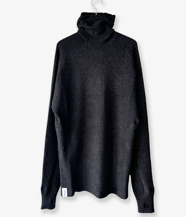 DESCENDANTから、SCUBA KNIT HOODYが入荷しました。レーヨンを中心とした混紡素材を使用しワッフル編みで仕立てたニットフーディー。インナー・レイヤーを想定したサイジングに設計され、バラクラバとしても、ハイネックとしても着用できる2WAYのディティール。手首まで暖かいフィンガーカフ仕様。