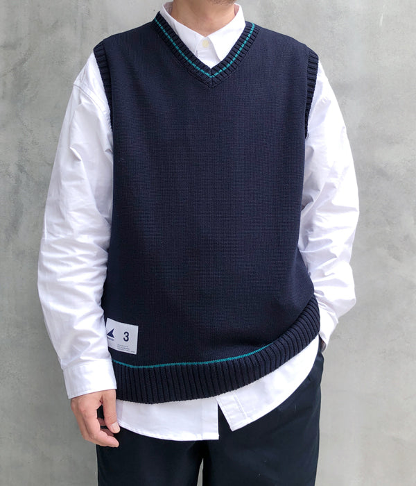 DESCENDANT/SERVIR KNIT VEST (NAVY)
