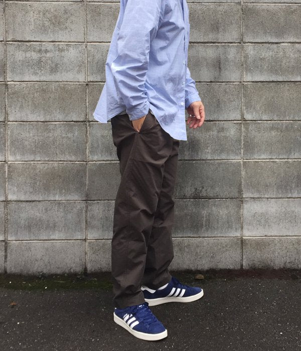DESCENDANTから、SHORE BEACH PANTSが入荷しました。緩やかなテーパードラインのゆったりとしたシルエットに、ウェストはドローコード入りのビーチパンツ。光沢感のある上品な生地を使用したこしのある履き心地。
