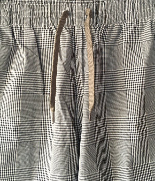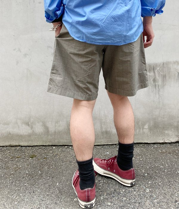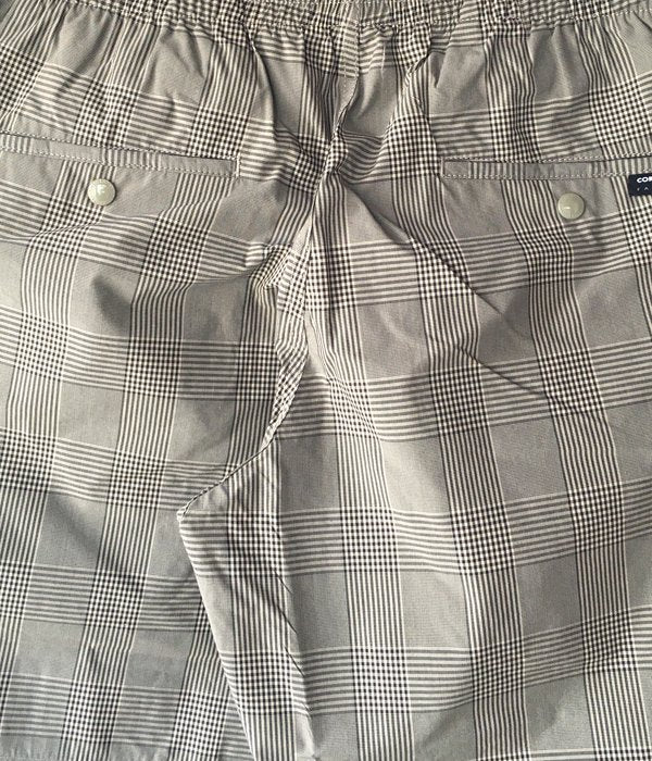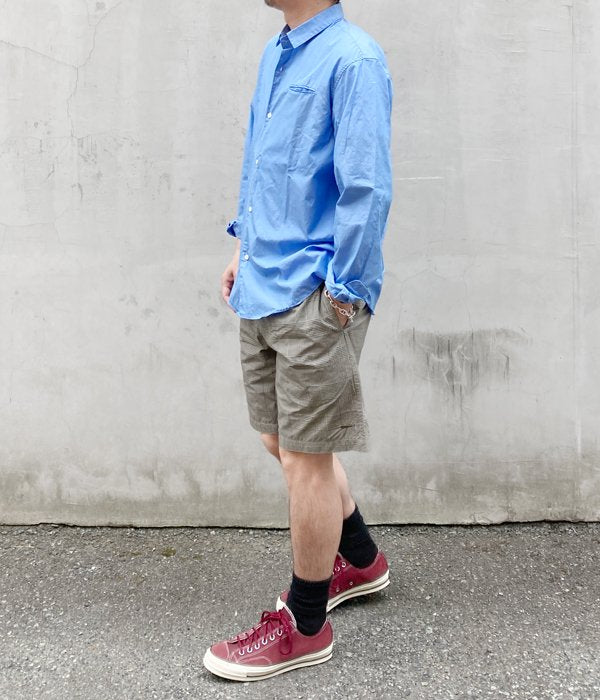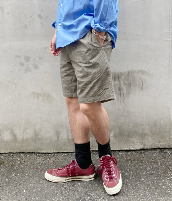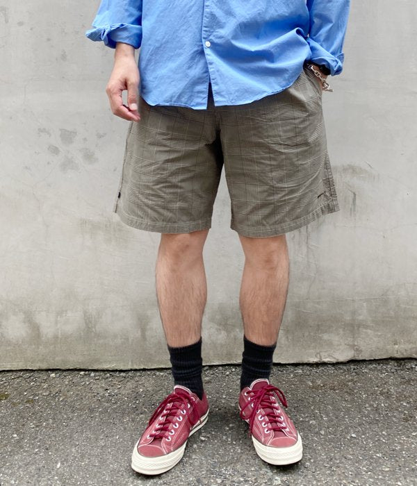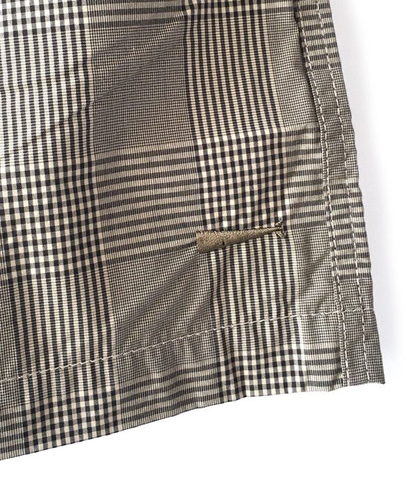 DESCENDANTから、SHORE BEACH SHORTSが入荷しました。チェック柄のコーデュラナイロンを使用した、薄手ながらも丈夫な素材感のビーチショーツ。ウェストはゴム入りのギャザー仕上げのリラックス仕立て。ベルトループを1箇所設け、左裾にはCACHALOTの刺繍ロゴをON。