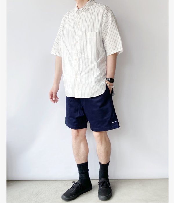 DESCENDANTから、SHORE BEACH SHORTSが入荷しました。コットンツイル素材を使用した光沢が綺麗な定番のビーチショーツ。ウェストはゴム入りのギャザー仕上げのリラックス仕立て。ベルトループを1箇所設け、左裾にはCACHALOTの刺繍ロゴをON。