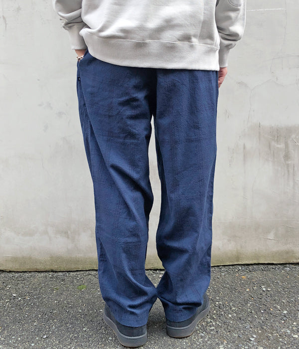 DESCENDANT/SHORE COTTON PLAID BEACH TROUSERS (NAVY)