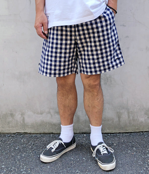 DESCENDANT/SHORE GINGHAM SHORTS (BLUE)